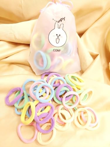 Generic - مجموعة توك للشعر بألوان باستيل، أربطة مرنة ناعمة لتسريحة ذيل الحصان، عبوة متعددة الألوان من 50 قطعة مع شنطة تخزين