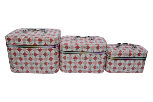 Generic - مجموعة علب مستحضرات التجميل بنمط ماسي من باتشورك، 3 قطع - ابيض واحمر