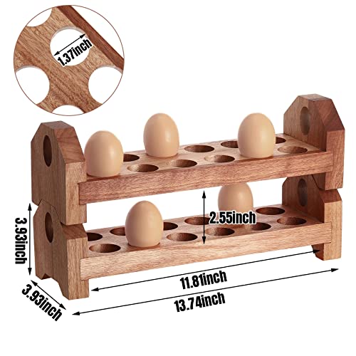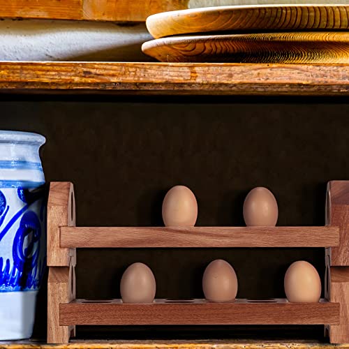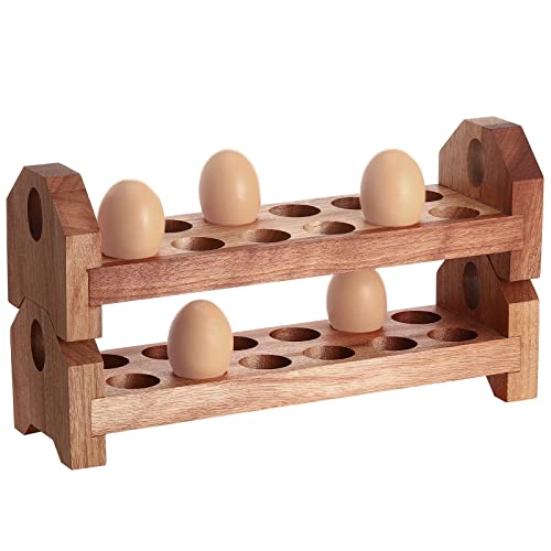 Patelai - حامل بيض خشبي يوضع على سطح المنضدة صواني تخزين البيض الطازج قابلة للتكديس من الخشب الشيطاني منظم صينية ريفي حاوية رف ريفية للعرض طاولة المطبخ طبقات مزدوجة