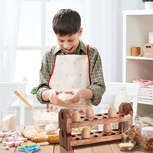 - مجموعة حوامل بيض عملية: سوف تحصل على قطعتين من حوامل البيض الخشبية القابلة للتكديس في العبوة، كل طبقة تأتي مع 12 فتحة؛ يمكن أن توفر لك رفوف البيض الخشبية الكثير من الراحة لتخزين البيض وتنظيمه