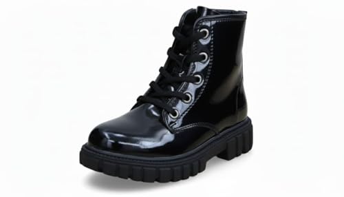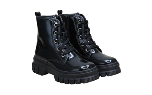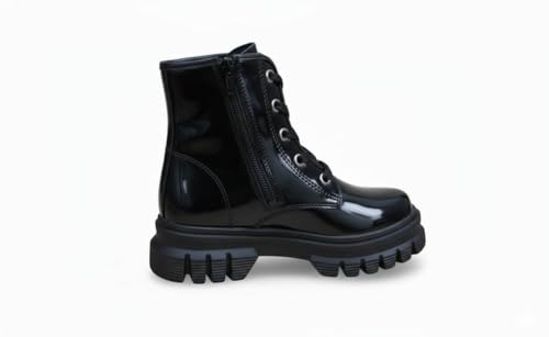generic - حذاء جلد لامع برباط اسود ونعل سميك وسحاب جانبي للاغلاق