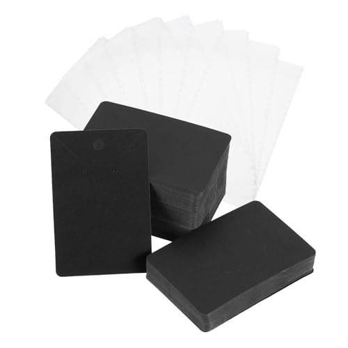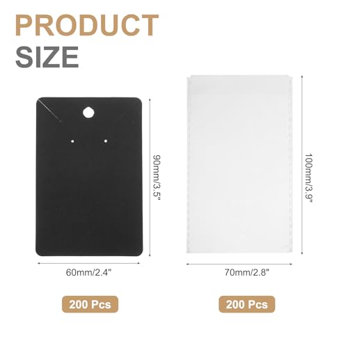 PATIKIL - بطاقات عرض الاقراط من باتيكيل، 200 قطعة من بطاقات حامل القلائد مع 200 قطعة من تغليف المجوهرات للاقراط والعقود والمجوهرات ومستلزمات التعبئة والتغليف (اسود، 3.5 × 2.4 انش)