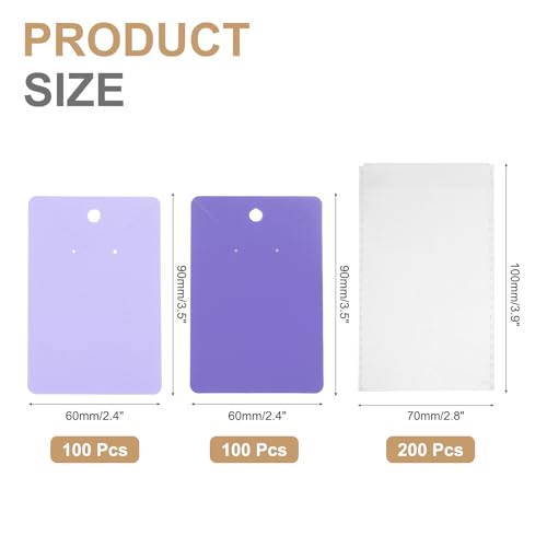 PATIKIL - بطاقات عرض الاقراط من باتيكيل، 200 قطعة من بطاقات حامل القلائد مع 200 قطعة تغليف المجوهرات للاقراط والعقود ومستلزمات التعبئة والتغليف (ارجواني فاتح/ارجواني، 3.5 × 2.4 انش)
