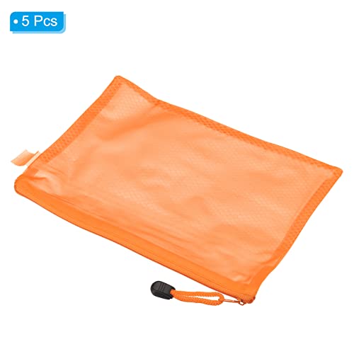 PATIKIL - شنطة بسحاب من باتيكيل عبوة 5 قطع مقاس ايه مقاومة للماء النايلون اقلام رصاص شبكية حقائب مستحضرات التجميل منظمة لمستلزمات السفر برتقالي