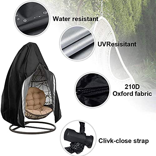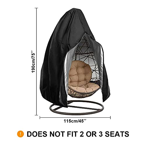 EASYBUYTECH - غطاء كرسي معلق على شكل بيضاوي، غطاء كرسي متأرجح متين مقاوم للماء مع سوستة، واقي أثاث خارجي (1.9 متر ارتفاع × 1.14 متر عمق)