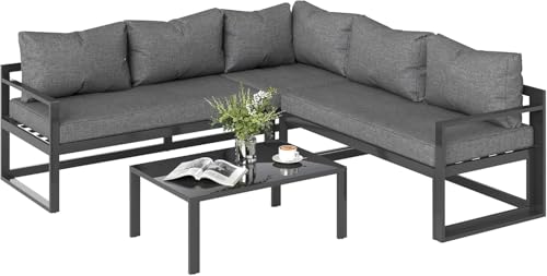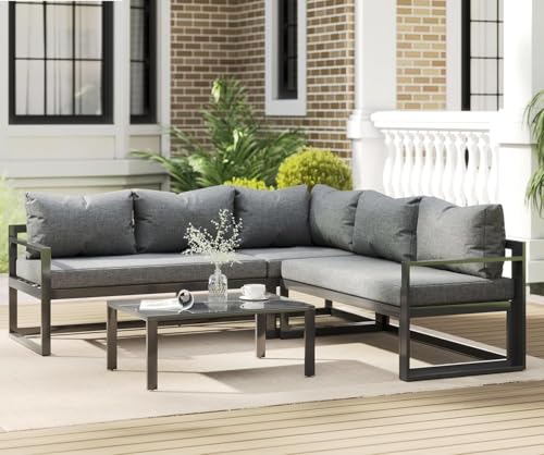 Generic - مجموعة من 3 قطع من باتيوس صني، مجموعة اثاث الحديقة، مجموعة حديقة مع طاولة جانبية وكنبة مع وسادة للاستخدام الخارجي، لون رمادي معدني