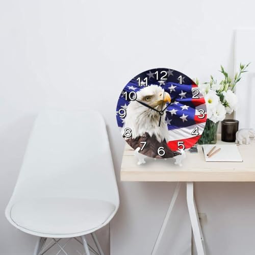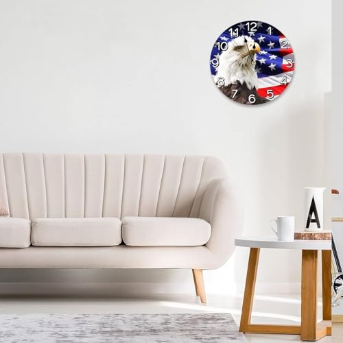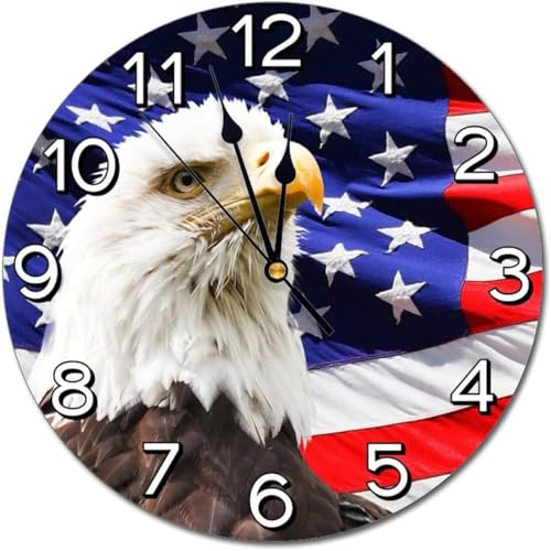 Generic - ساعة حائط دائرية صامتة تعمل بالبطارية مزينة بتصميم نسر مع العلم الأمريكي مناسبة لتزيين المنزل والمكتب والمدرسة مقاس 30 سم