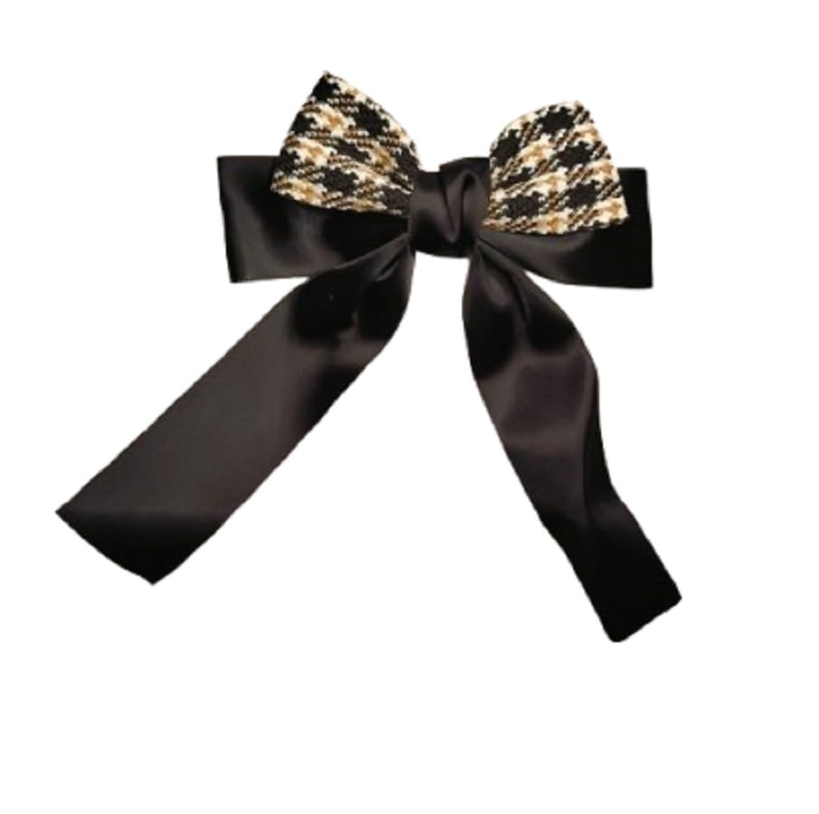 Generic - مشبك شعر بشريط ساتان اسود منقوش