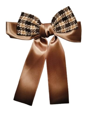 - مشبك شعر بشريط ساتان بني منقوش