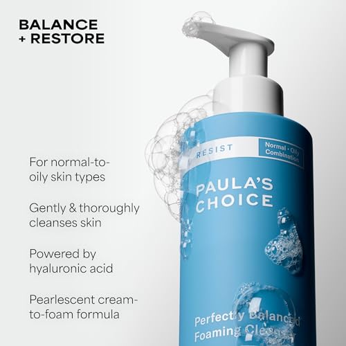 PAULA'S CHOICE - باولاز تشويس منظف رغوي متوازن مثالي من ريزيست، حمض الهيالورونيك والصبار، غسول وجه مضاد للشيخوخة، المسام الكبيرة والبشرة الدهنية، 6.4 اونصة