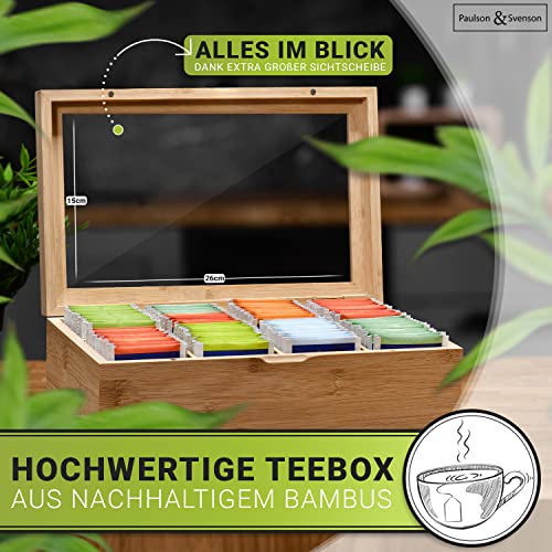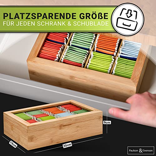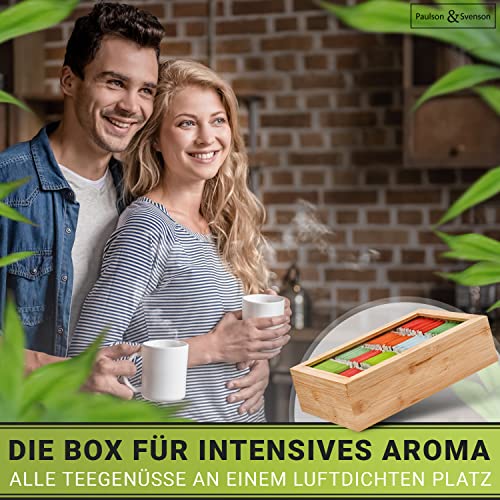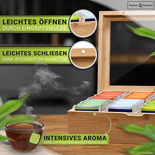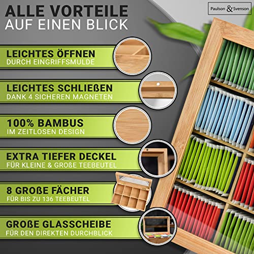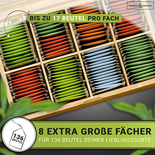 Paulson & Svenson - صندوق شاي مستدام مع 8 أقسام علبة تخزين أكياس من خشب خيزران معتمد مجلس رعاية الغابات منظم إغلاق مغناطيسي محكم ونافذة رؤية بولسون اند سفينسون®