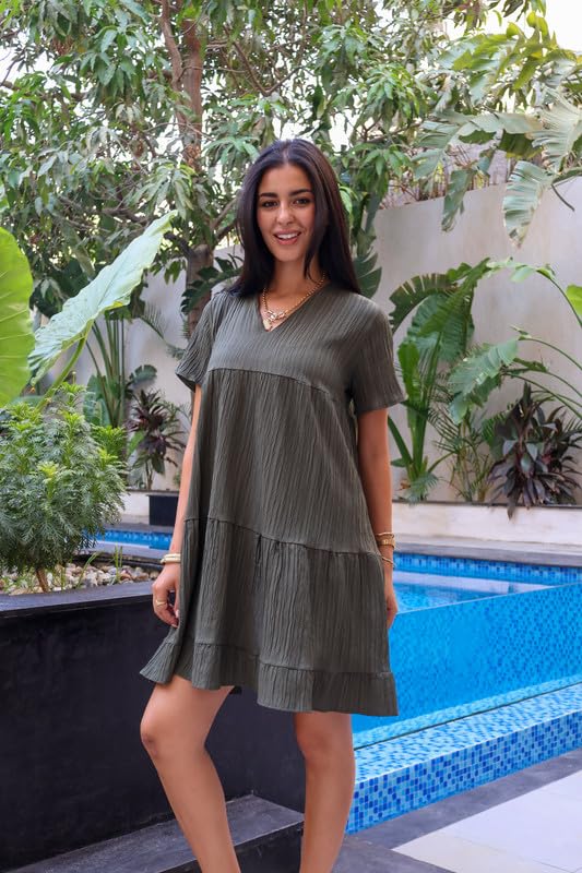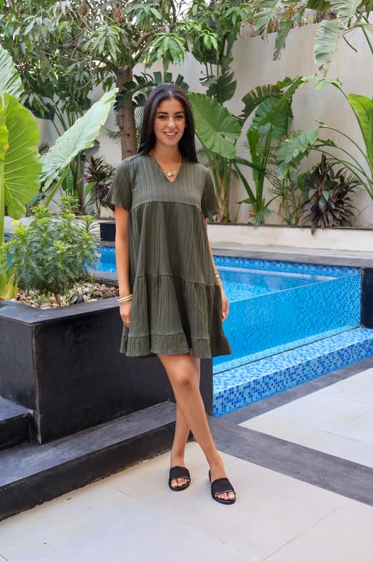 Pavo - بافو فستان لورا للنساء، مقاس S، لون زيتي