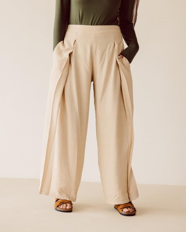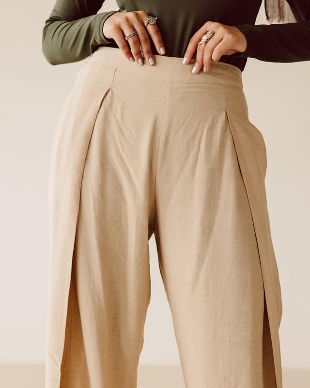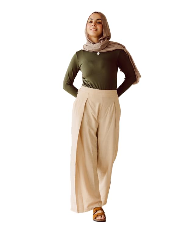 Pavo - بافو بنطلون بارجل واسعة للنساء، لون بيج، مقاس M