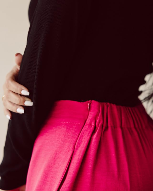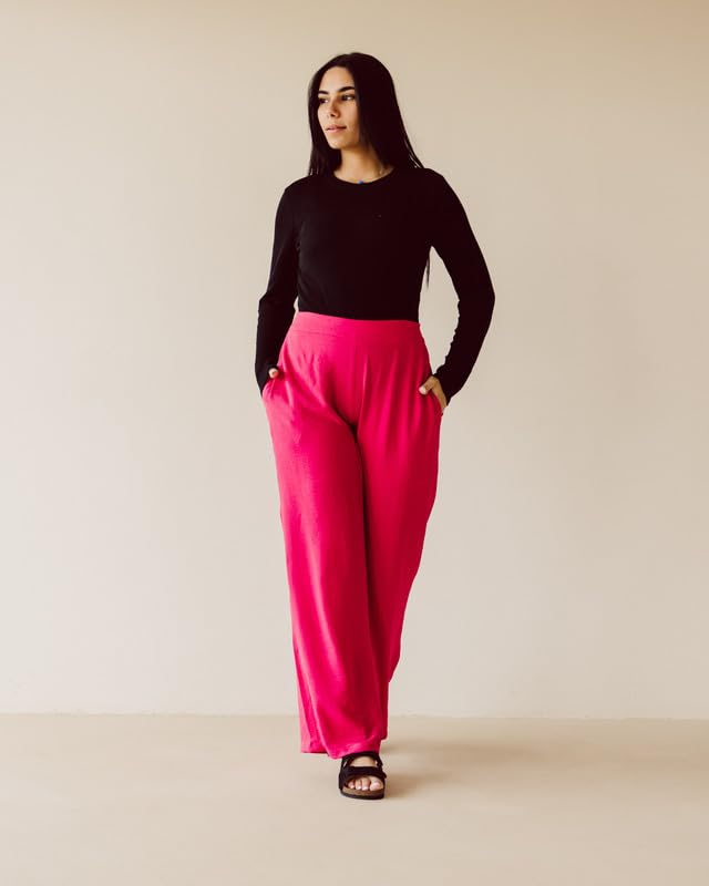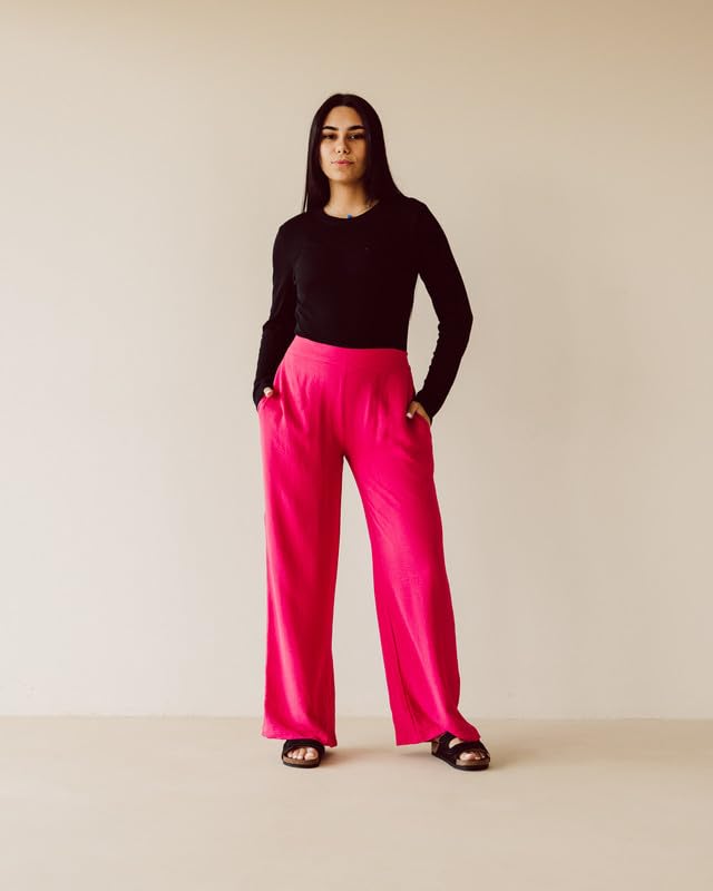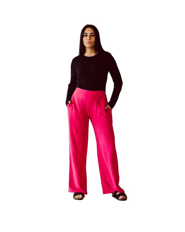 Pavo - بافو بنطلون بقصة مستقيمة للنساء بلون بينك مقاس XL، زهري