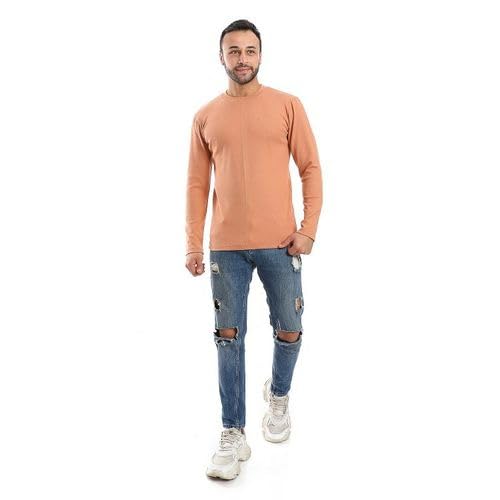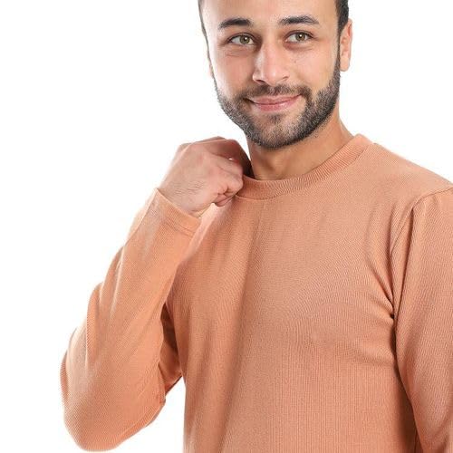 PAVONE men wear - سويت شيرت مضلع من القطن بأكمام طويلة وخفيف الوزن للرجال من بافون مين وير