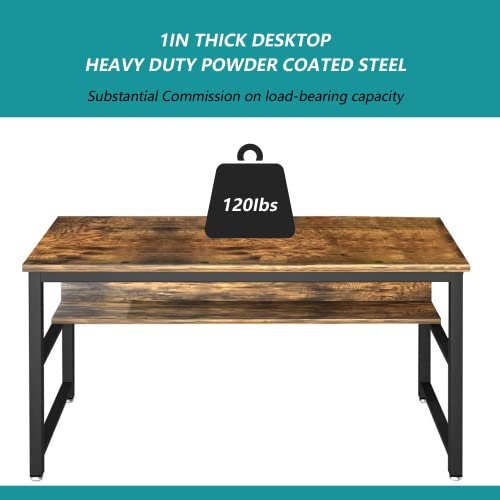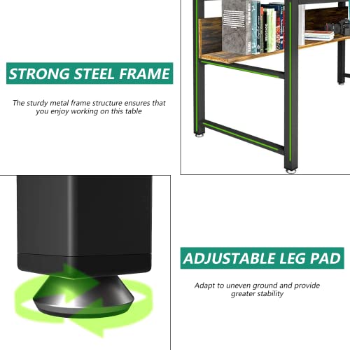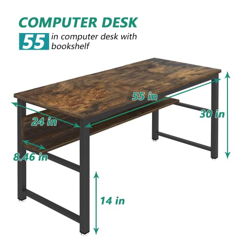 PayLessHere - مكتب كمبيوتر مع رف كتب، مكتب للكتابة بإطار خشبي ومعدني، طاولة دراسة لغرفة المكتب المنزلي من باي ليس هير، 1.5 م، لون ريترو براون (بني رترو)