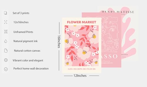 payofun - بوستر حائط مطبوع عليه هنري ماتيس بيكاسو لوحة فنية بلون بينك باستيل دنماركي لسوق الزهور معرض جدارية على شكل زهرة وردية لغرفة المعيشة 12 × 16 انش 3 بدون اطار
