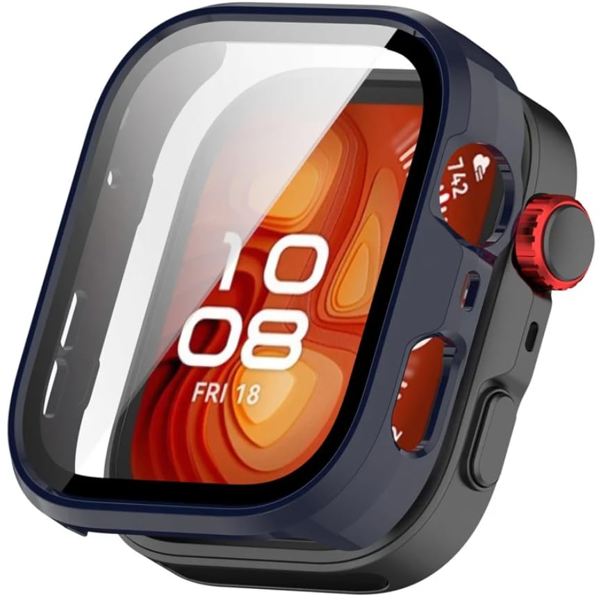 Generic - غطاء اطار من البولي كربونات مع طبقة شاشة من الزجاج المقوى لساعة هواوي فيت 4 - ازرق داكن