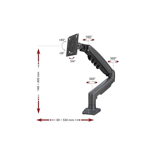 Generic - حامل شاشة الكمبيوتر - ذراع زنبركي غاز مريح لشاشات 17-30 بوصة، دوران 360 درجة، فيسا 75x75 & 100x100