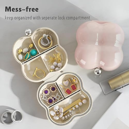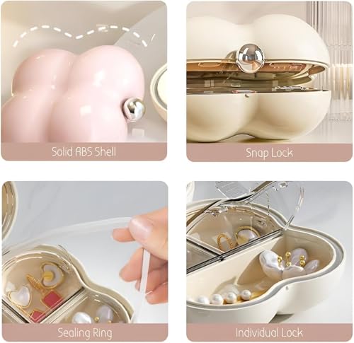 - تصميم أنيق: صندوق مجوهرات على شكل سحابة بلون بينك ناعم مع لمسات معدنية أنيقة، مثالي لإضافة لمسة من الرقي إلى أي طاولة زينة