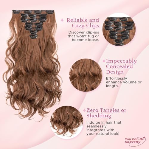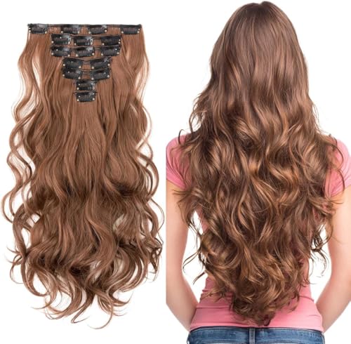 Generic - وصلات شعر صناعي مموج عالي الجودة بنسيج مزدوج للنساء، 16 مشبك، بطول 40.64 سم، ووزن 120 جرام، 7 قطع (لون بني فاتح، N10)، موديل JW264