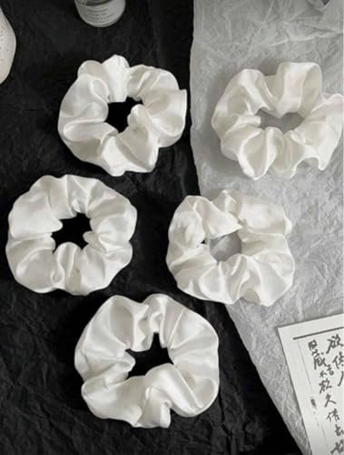 Generic - توك شعر ناعمة ومرنة من الساتان - ربطات شعر على شكل ذيل حصان للبنات والسيدات، لون أبيض، عبوة 5 قطع