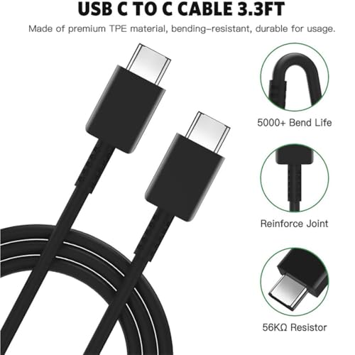 Generic - كابل بي دي 1.2 متر شاحن فائق السرعة نوع C الى 3 امبير 25 واط مزامنة البيانات متوافق مع سامسونج S24/S23 الترا/22/21Note10/نوت 10 بلس/a70/a80/a70S والمزيد - اسود