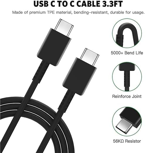 Generic - كابل بي دي 1.2 متر شاحن فائق السرعة نوع C الى نوع C 5 امبير 25 واط مزامنة البيانات متوافق مع سامسونج S24/S23 الترا/22/21Note10/نوت 10 بلس/a70/a80/a70S والمزيد - اسود