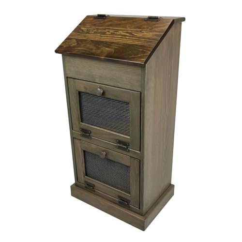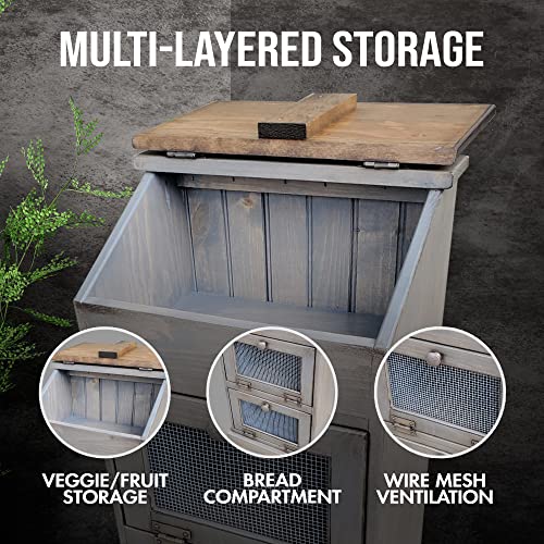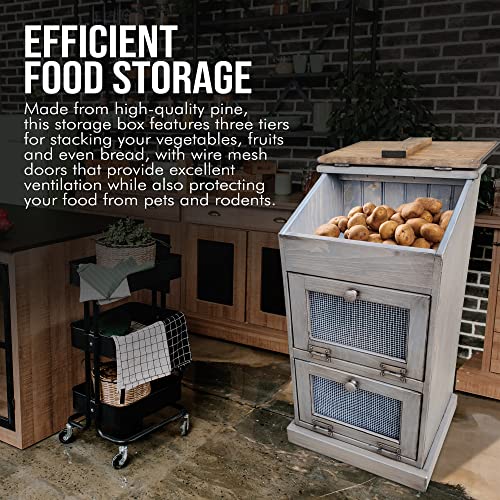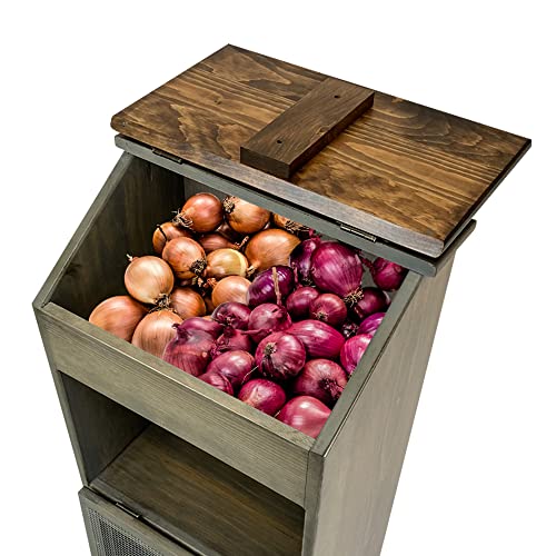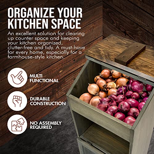 Peaceful Classics - صندوق تخزين البطاطس، صندوق خشبي لتخزين الخبز مزين لتخزين البطاطس والبصل، عياشة خبز مزودة بقسم لمنتجات البقالة، علبة خشبية بغطاء للخضروات للمطبخ من بيسفول كلاسيكس، بلون خشبي بويتر