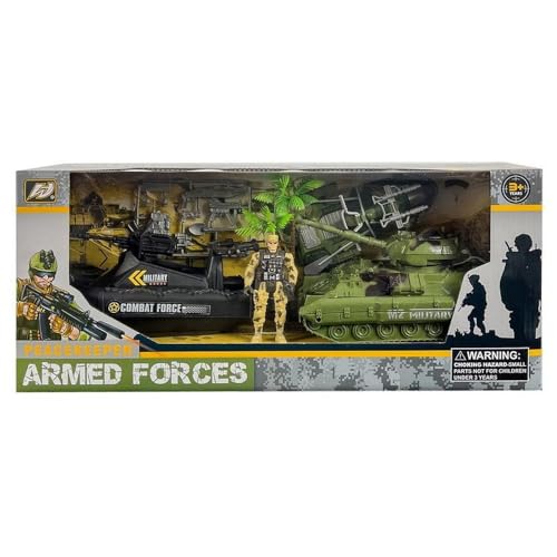 Generic - مجموعة ألعاب قتال عسكرية تتضمن دبابة وقارب وشخصية جندي واكسسوارات مناسبة للأعمار من 3 سنوات فما فوق من بيس كيبر