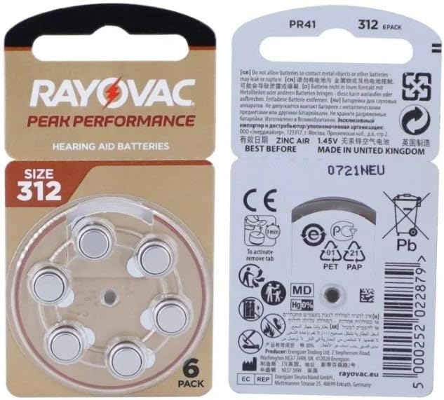 Generic - بطاريات أجهزة تقوية السمع Peak Performance Rayovac EXTRA - عدد 6 بطاريات (PEAK, Size 312)