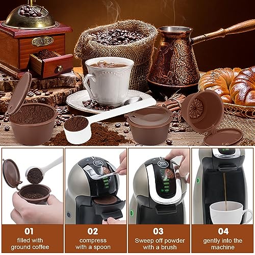 PEALOVCOM - كبسولات قهوة قابلة للملء وإعادة الاستخدام مكونة من 4 قطع فلتر فابل مع فرشاة ومعلقة بيلوفكوم للقهوة والشاي والشوكولاتة الساخنة 5.3×3.5 سم بلاستيك