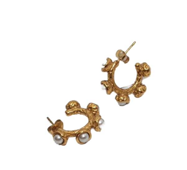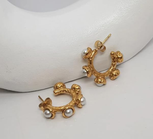 Generic - اقراط حلقية نحاسية مطلية باللؤلؤ والذهب، نمط عصري، مسامير دائرية، سمك 0.08 انش