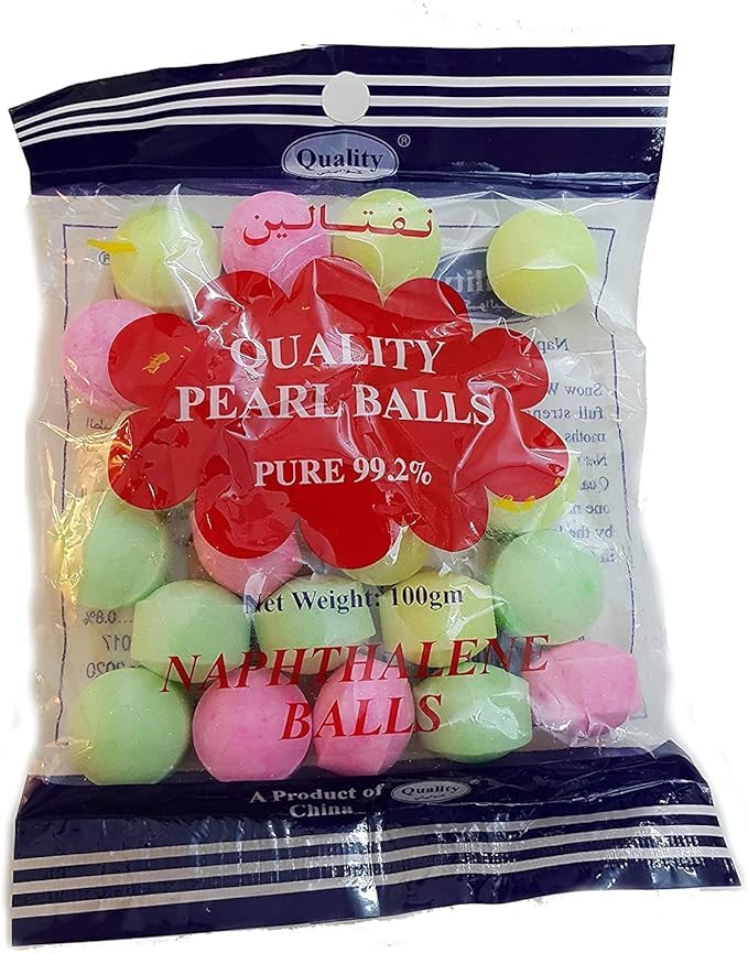 - محتويات العبوة: تحتوي على 100 جرام من كرات النفتالين عالية النقاء معبأة في كيس محكم الإغلاق.