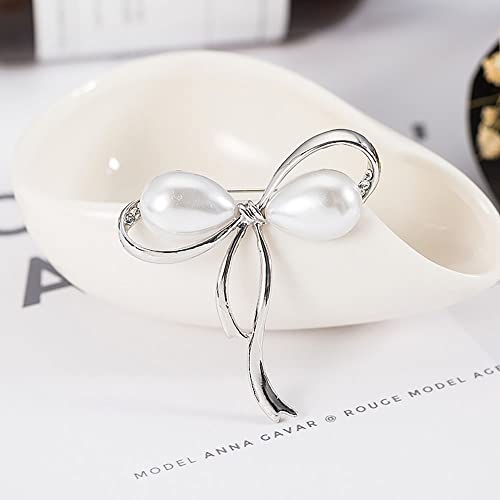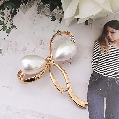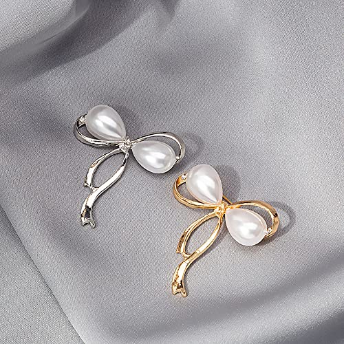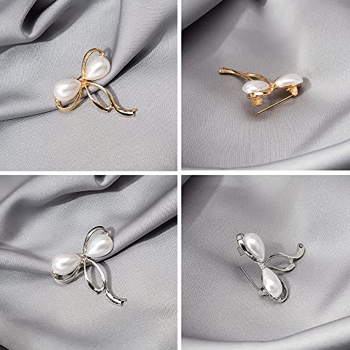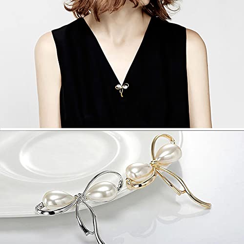 SSyang - مجموعة من قطعتين من بروش لؤلؤي على شكل فيونكة للحريم من لوو، دبوس بروش بتصميم سيط من اللؤلؤ، مجوهرات بروش صناعية مطعمة بخليط معدني، ابداعية ومفيدة (لون ذهبي وفضي)