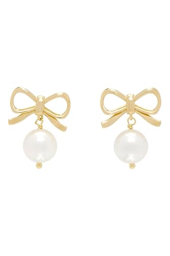 Generic - اقراط على شكل فيونكة من اللؤلؤ - اقراط انيقة مطلية بالذهب على شكل فيونكة تتميز بلمسات من اللؤلؤ الحقيقي، خفيفة الوزن ومثالية للمناسبات الرسمية.