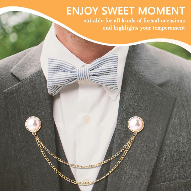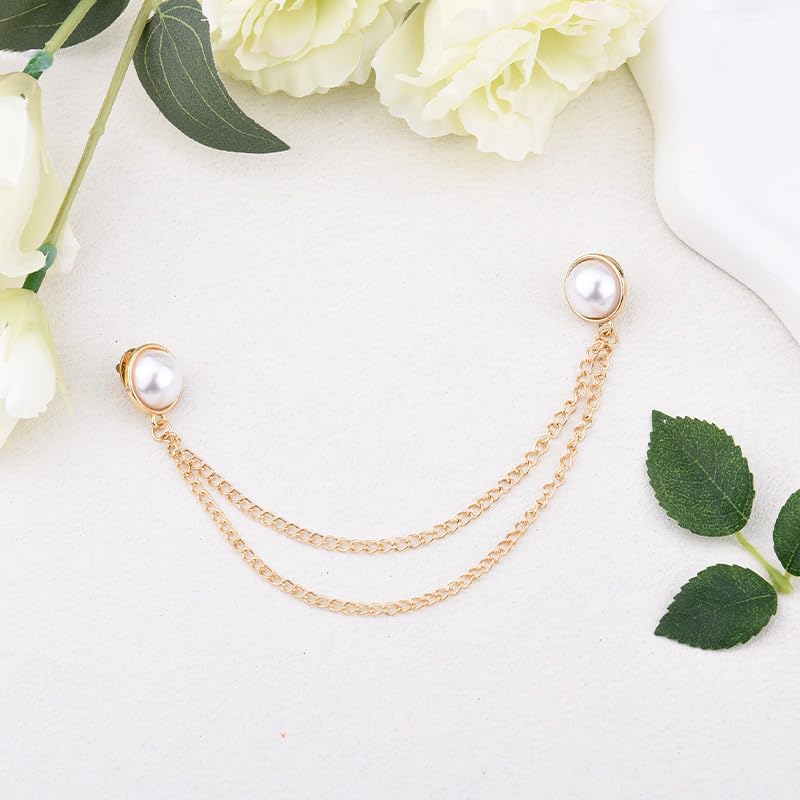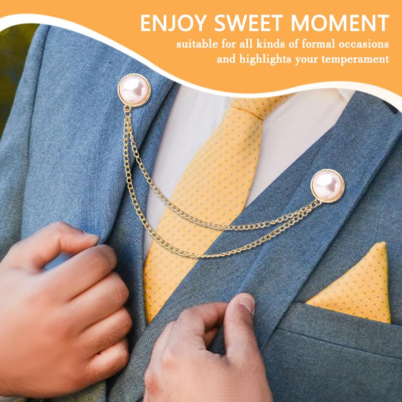 Kilener - دبابيس بروش من اللؤلؤ بشراشيب، دبابيس لطية ياقة الصدر لبدلات الرجال مع سلسلة تعليق، اكسسوارات للفساتين والقمصان والبدلات للرجال والنساء