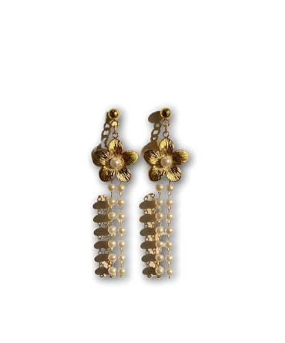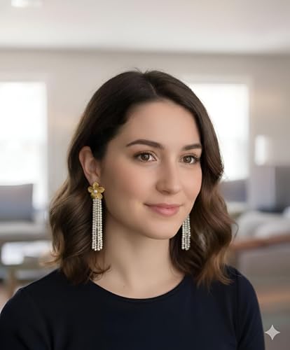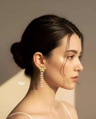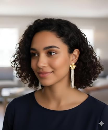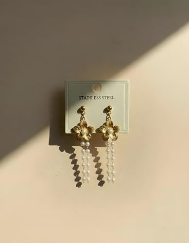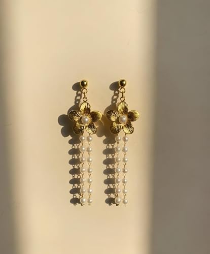Generic - اقراط متدلية من اللؤلؤ - اقراط شرابة طويلة مطلية بالذهب مع لؤلؤ مضيء وزركونيا مكعب لامع، خفيفة الوزن ولا تسبب الحساسية، هدية مثالية لها.