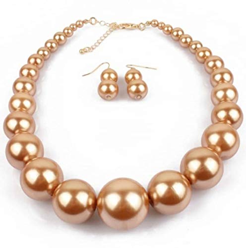 Other - طقم لؤلؤ مكون من عقد + اقراط ذهبي، للنساء