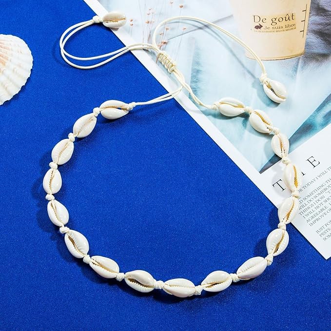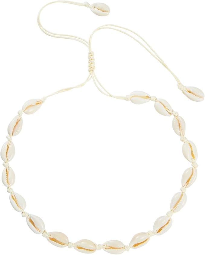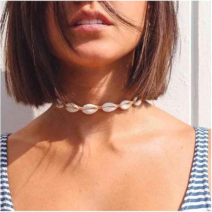Generic - سلسلة قلادة شوكر للنساء والبنات من لؤلؤ على شكل صدف بتصميم بحري اصداف مجوهرات مصنوعة يدويا