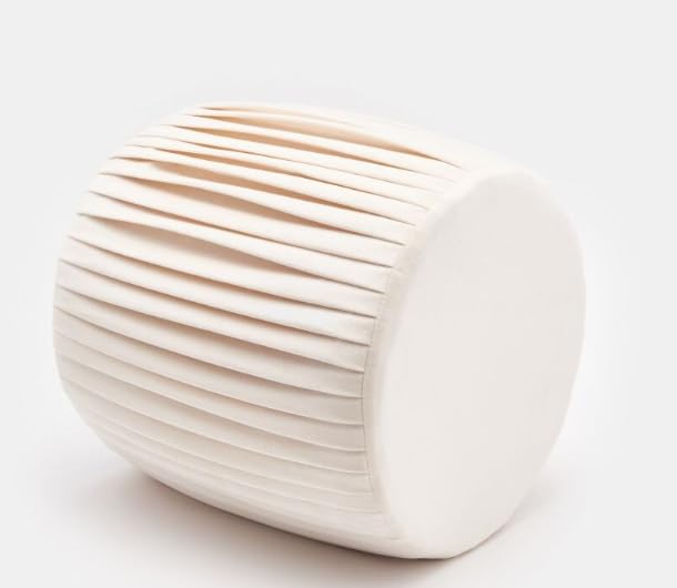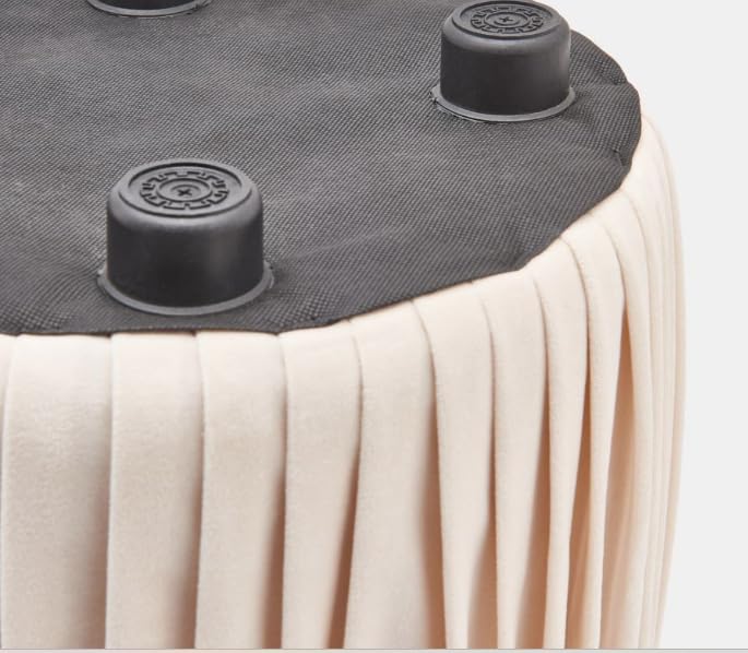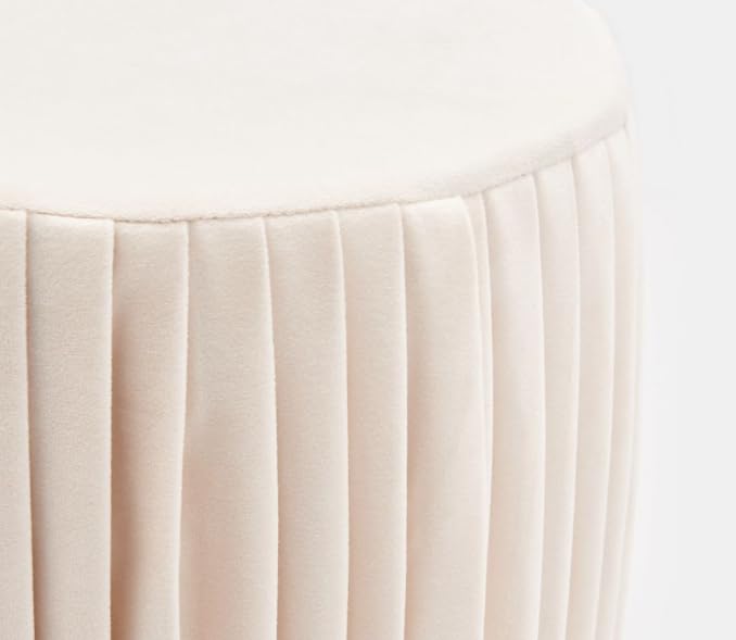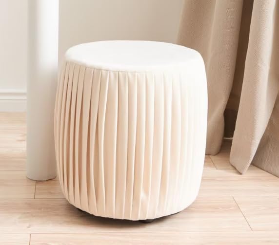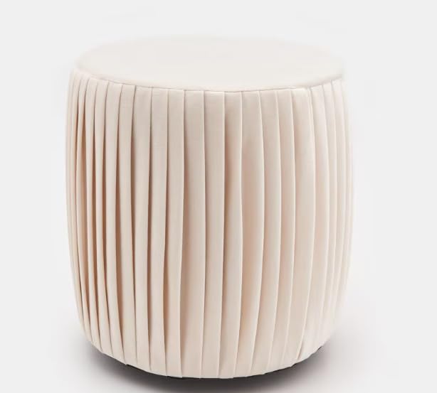 Generic - مسند قدم مخملي بكسرات بلون ابيض لؤلؤي، مسند قدم دائري بسيط مع طيات عمودية ناعمة، مقعد فانيتي معاصر، وسادة ديكور لغرفة النوم