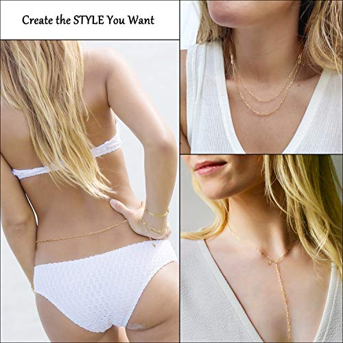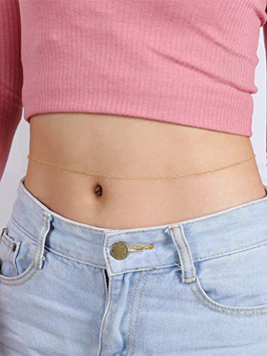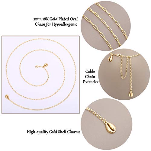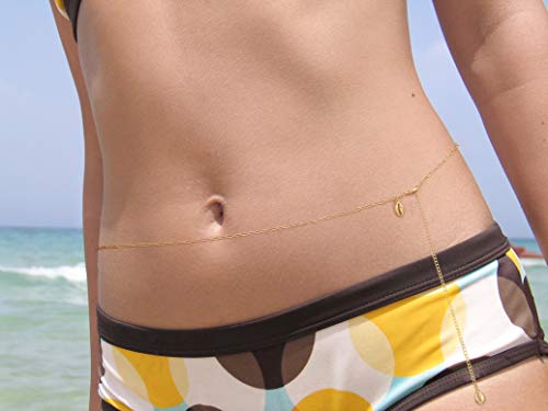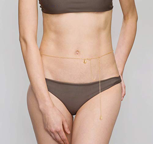 PEARLADA - بيرلادا، سلسلة للجسم بتصميم بسيط للشاطئ من الذهب عيار 18 واللؤلؤ، قابلة للتعديل ومزينة بدلايات عصرية لوسط المراة, معدن