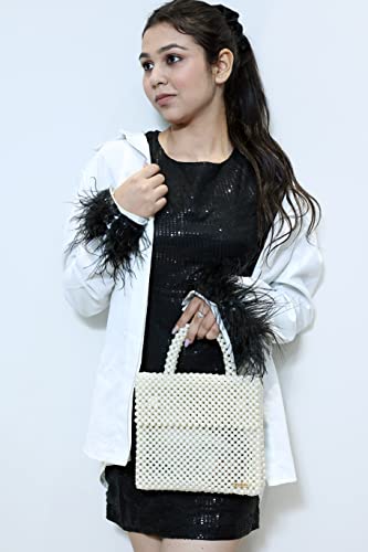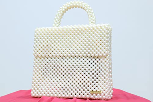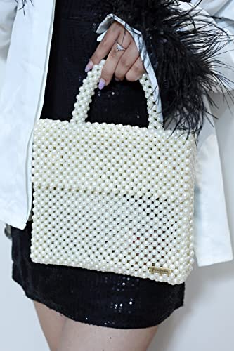 PEARLFIESTA - شنطة يد مطرزة باللؤلؤ للنساء من بيرلفيستا - شنط كبيرة توت رسمية عتيقة مصنوعة يدويا للبنات-احدث عصرية مزينة