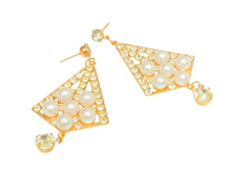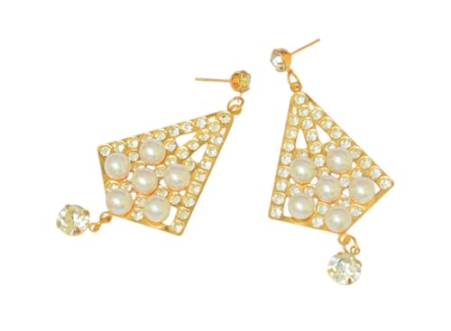 Generic - حلقان لؤلؤ بطابع حديث للنساء، قطعتان، طقم ذهبي