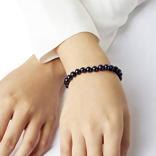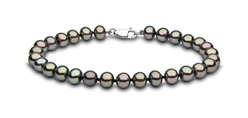 generic - سوار لؤلؤ المياه العذبة المستزرع من الذهب الابيض من اللؤلؤ (اسود، 9 قيراط)