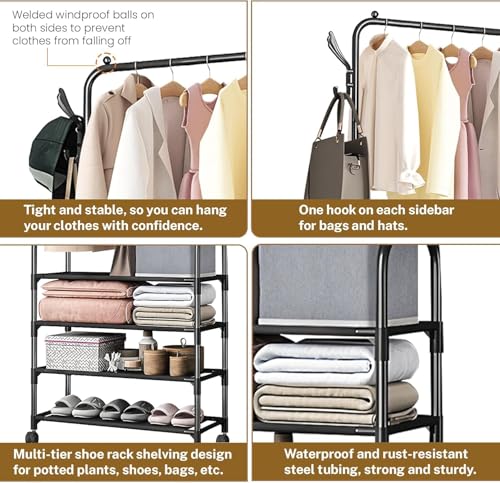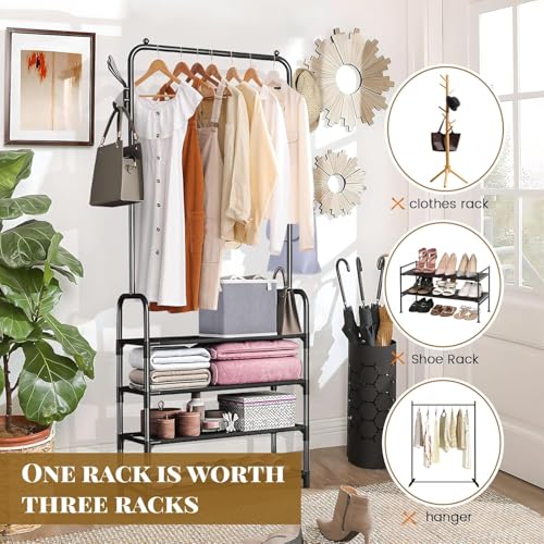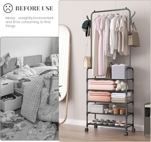 - رف معطف عملي بالكامل: بفضل وجود خُطافين قابلين للإزالة، وقضيب عملي لتعليق الملابس، بالإضافة إلى رف أحذية مكون من 4 طبقات، تساعدكِ علاقة الملابس هذه في الحفاظ على مدخل منزلكِ منظماً وأنيقاً طوال الوقت.