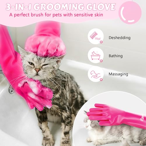 pecute - قفازات للعناية بالحيوانات الأليفة، قفازات استحمام للقطط مقاومة للحرارة بأسنان عالية الكثافة، قفازات استحمام للكلاب من السيليكون بتصميم محسن بخمسة أصابع للاستحمام والتدليك للكلاب والقطط وردي من بيكيوت