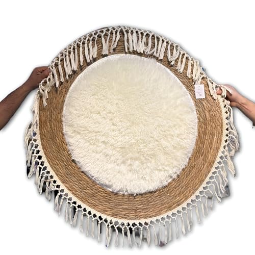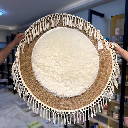 Generic - دواسة او فراش من الفرو بتصميم بوهيمي انيق، مثالي للوقوف بجانب السرير او في زاوية قراءة مريحة، يضيف الدفء ونوعًا من المظهر لأي ديكور لغرفة النوم. (دائري 80 × 80)