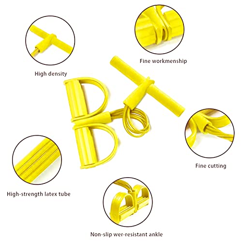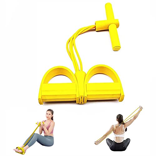 No Brand - مشد مقاومة خفيف ومرن باربعة انابيب مطاطة من اللاتكس ودواسة قدم لممارسة تمرينات البطن (اصفر)