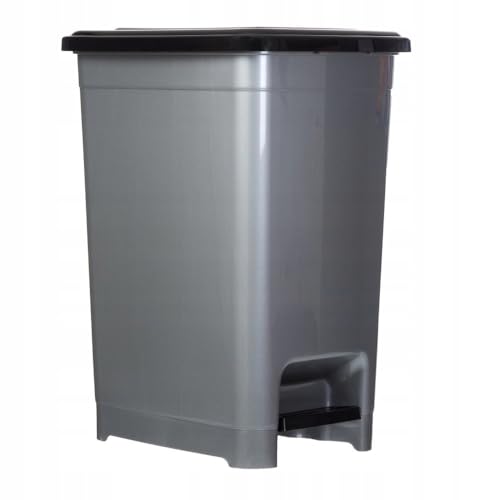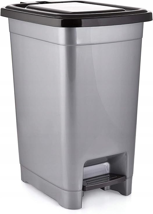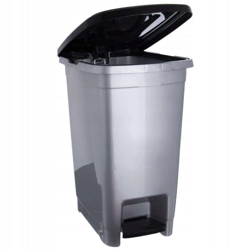 Generic - سلة مهملات دواسة، سعة 40 لترًا، بلاستيك رمادي، سلة مهملات مطبخ مع غطاء
